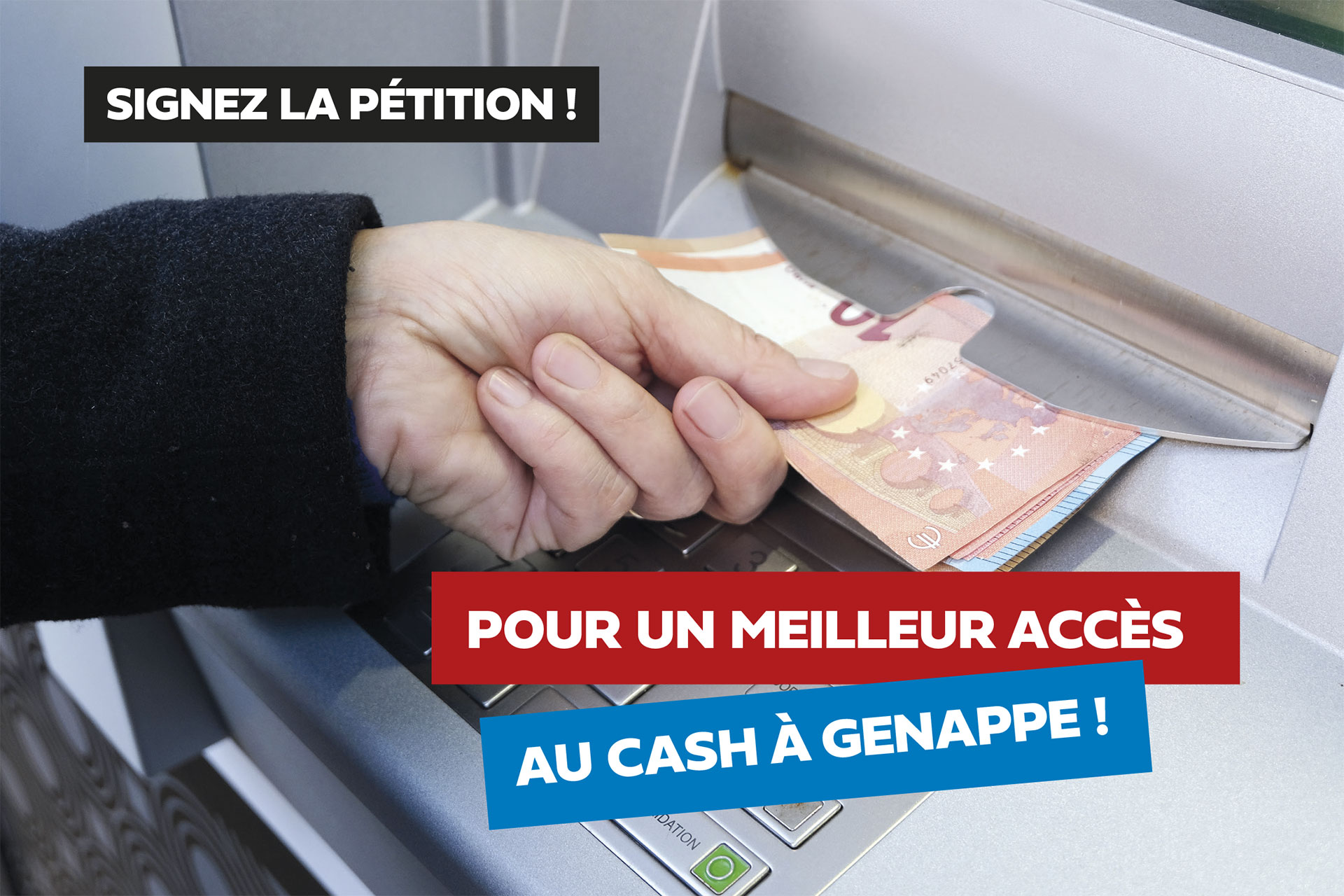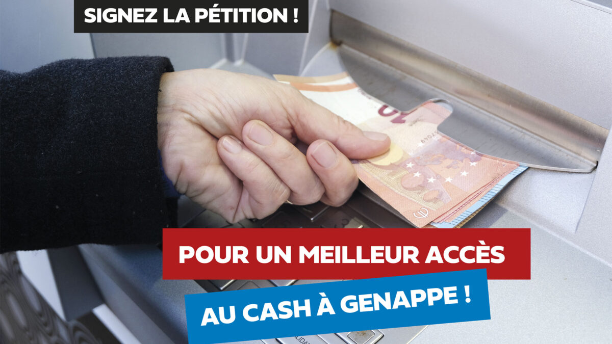 Cette pétition fait suite à l’interpellation présentée par Vincent Girboux au Conseil communal du mois de mai, concernant l’insuffisance des points de retrait Cash à Genappe. Malgré une interpellation citoyenne de ce jour, aucune avancée concrète n’a été obtenue.